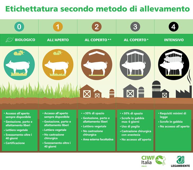 CIWF and Legambiente have gone one step further to develop a series of criteria for the labelling of pig breeding methods. Each system, according to the associations, refers to different potential levels of well-being, depending on the extent to which the animals are able to express their natural behaviours.